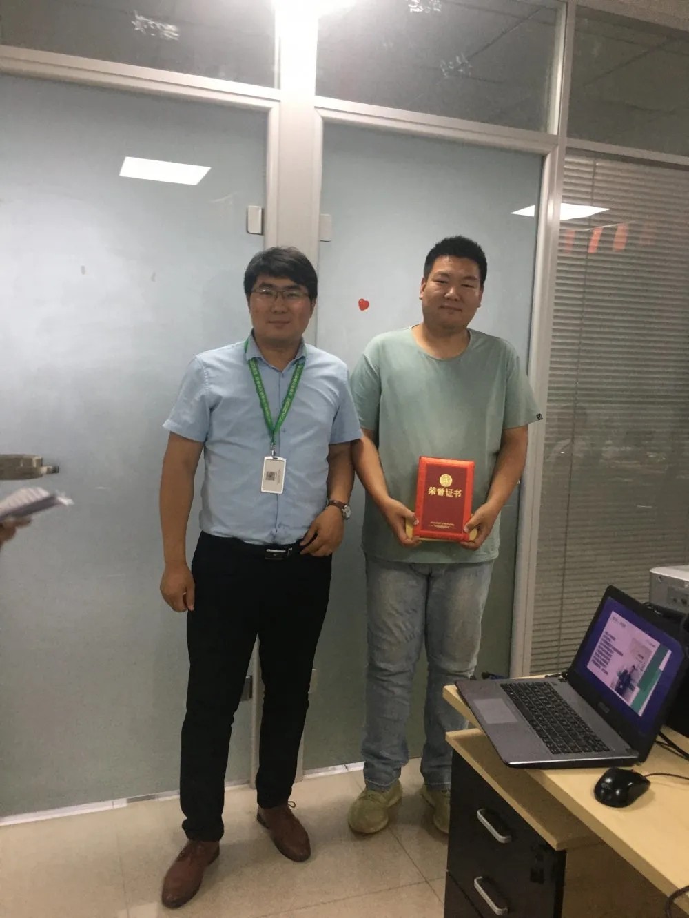 ▲齐腾同学周年分享,公司奖励礼品