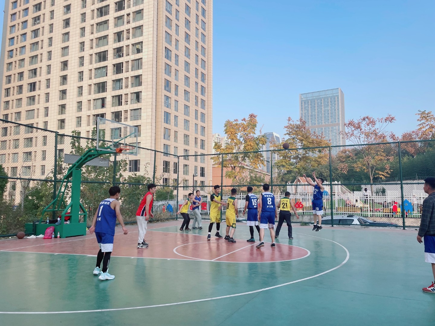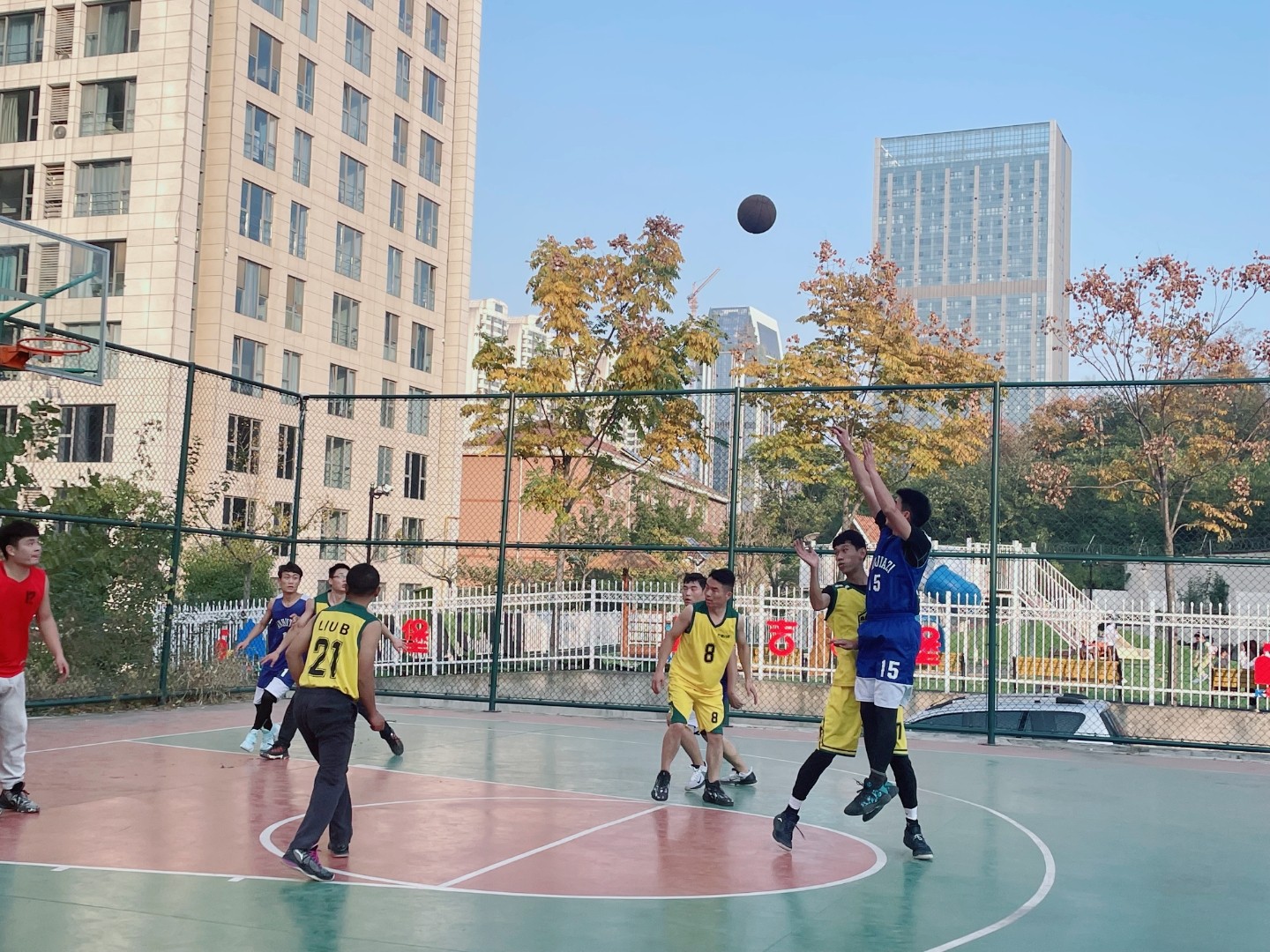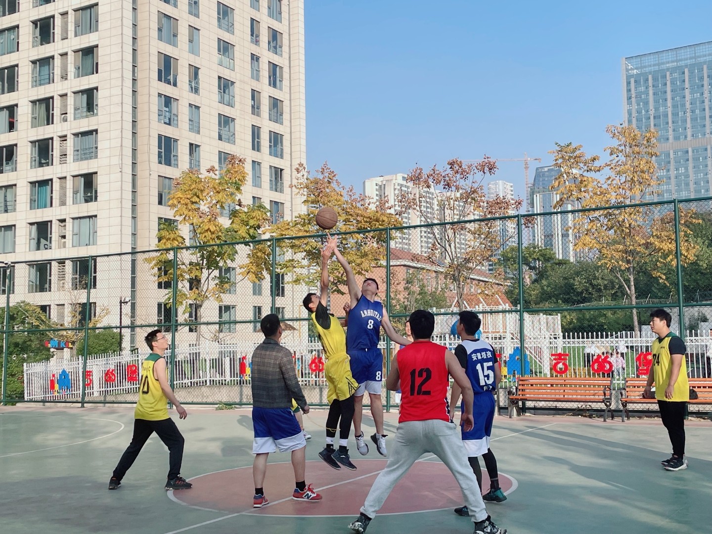 在凤凰国际的篮球场地,正演绎着篮球运动的精彩,一个个矫健的身影来回奔跑着,阵阵呐喊声和掌声响彻在球场上空,这是2021年安徽塔孜·58安居客&蚌埠房产精英客户篮球比赛的现场。